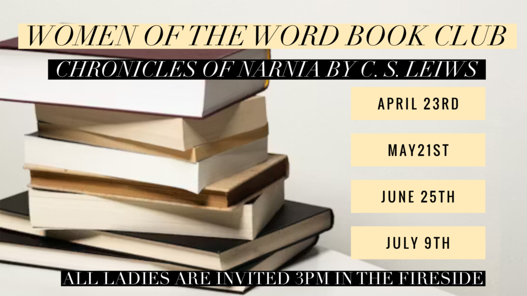 Join us this spring/summer for a book club centered around 3 of the stories of Narnia. We will read the books and discuss the overarching story of God from Creation to Jesus’ Sacrifice to New Creation.